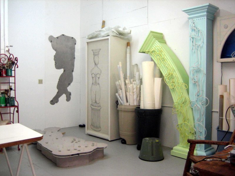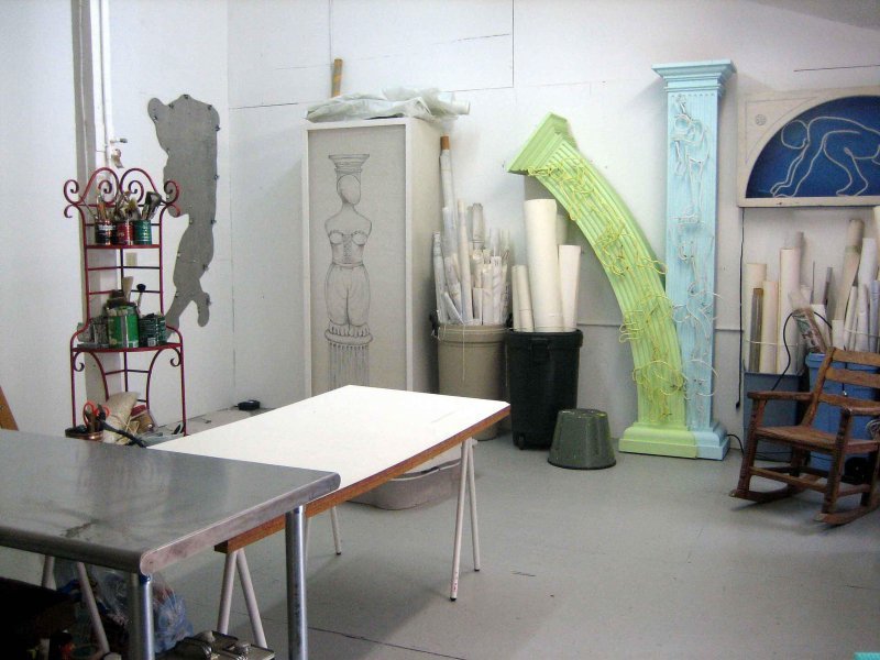 One fortuitous weekend, I visited a studio run by neon glass benders. One thing led to another, and soon I was airbrushing fluorescent figures onto friezes, pediments and columns, and making my first proposals for neon figures in post-modern architecture, sliding down columns, bursting from pediments, and tumbling along friezes.